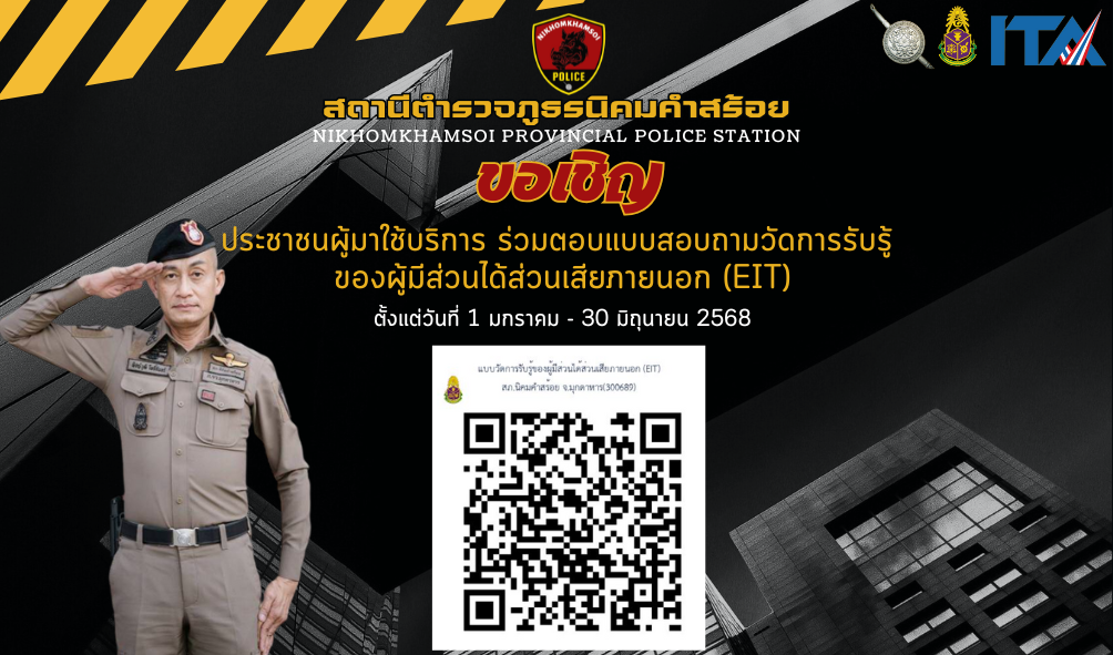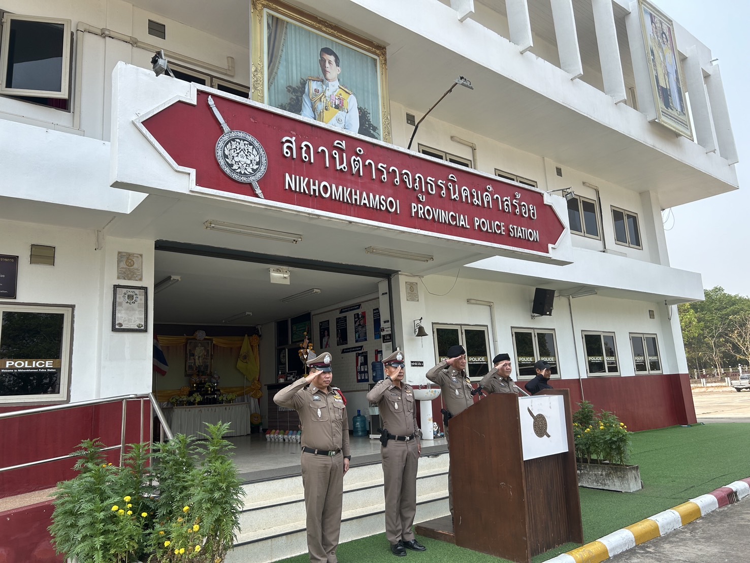พ.ต.อ.พิชญ์วุฒิ โพธิ์จันทร์ ผกก.สภ.นิคมคำสร้อย ประกาศเจตนารมณ์ของหน่วยงานในการป้องกันและ ต่อต้านการท