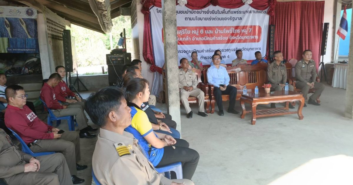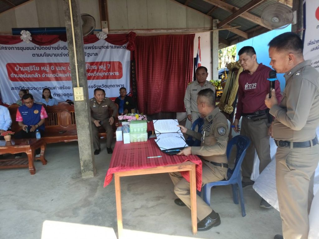 ข่าวภารกิจผู้บังคับบัญชา 12 มีนาคม 2568 โดย admin / ข่าวประชาสัมพันธ์,ข่าวภารกิจผู้บังคับบัญชา วันที่ 12 มี.ค. 2568 เวลา 14.30 น. นำโดย พ.ต.อ.พิชญ์วุฒิ โพธิ์จันทร์ ผกก.สภ.นิคมคำสร้อย พ.ต.ท.มงคล แวงวรรณ รอง ผกก.ป.สภ.นิคมคำสร้อย พ.ต.ต.ไพรบูรณ์ เทพนา สวป.สภ.นิคมคำสร้อย พร้อมด้วย ชุดปฏิบัติการชุมชนยั่งยืนฯ สภ.นิคมคำสร้อย และเครือข่ายที่ร่วมดำเนินการตามโครงการฯ มี นายกเทศมนตรีตำบลร่มเกล้า สาธารณะสุขอำเภอฯ ผอ.รพ.สต.ฯ กำนันตำบลร่มเกล้า ผู้ใหญ่บ้าน ม.6 ม.7 ผู้ช่วยผู้ใหญ่ฯ ประธาน อสม.ฯ ม.6 ม.7 และคณะกรรมการ อสม.ฯ ดำเนินกิจกรรมพิธีเปิดโครงการดำเนินงานตำบลยั่งยืน เพื่อแก้ไขปัญหายาเสพติดแบบครบวงจรตามยุทธศาสตร์ชาติ ประจำปีงบประมาณ ๒๕๖๘ บ้านสุริโย,โพธิ์ไทร ม.6 ม.7 ต.ร่มเกล้า อ.นิคมคำสร้อย จ.มุกดาหาร โดยมี นายวิรัตน์ เจริญจิตร์ นายอำเภอนิคมคำสร้อย เป็นประธานในพิธีฯ โดยได้ดำเนินการดังนี้ ๑.ทำพิธีเปิดโครงการฯโดยท่านนายอำเภอนิคมคำสร้อย เป็นประธานในพิธีฯ ๒.การลงนามในข้อตกลง(MOU)ร่วมกันของหัวหน้าส่วนราชการที่เกี่ยวข้องตามโครงการฯ ๓.ให้ความรู้เกี่ยวกับที่มา นโยบายและวัตถุประสงค์ของโครงการฯ ๔.การทำประชาคมชาวบ้าน ขอความเห็นชอบ การเข้าดำเนินการ ตามโครงการฯ ๕.ทำการตรวจปัสาวะเพื่อหาสารเสพติด กับชุดปฏิบัติการ และ ผู้ใหญ่บ้าน,ผู้ช่วยฯและคณะ อสม.ฯ ผลการตรวจ ไม่พบผู้เสพสารเสพติดแต่อย่างใด ณ ศาลาประชาคมหมู่บ้านคำนางโอก ม.5 ต.ร่มเกล้า อ.นิคมคำสร้อย จ.มุกดาหาร Facebook iconFacebookTwitter iconTwitterLINE iconLine