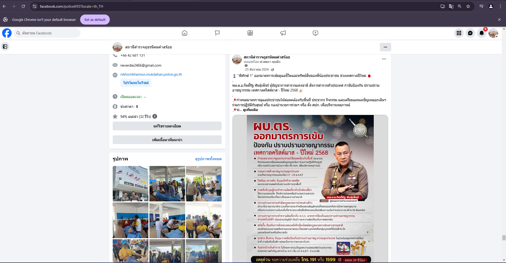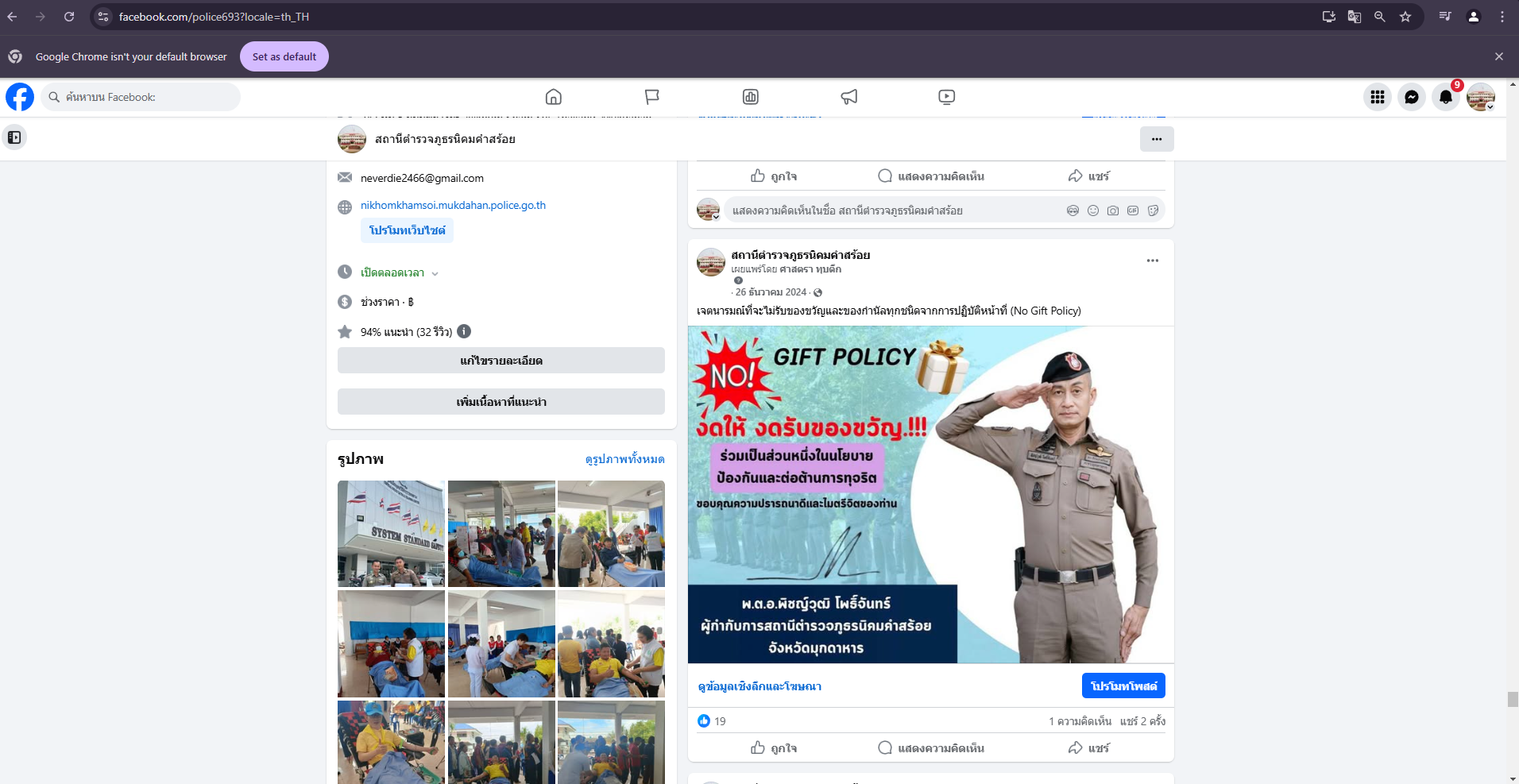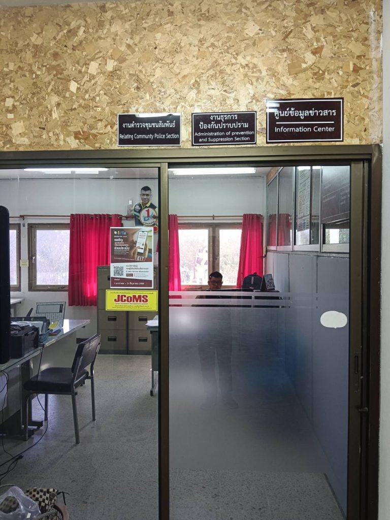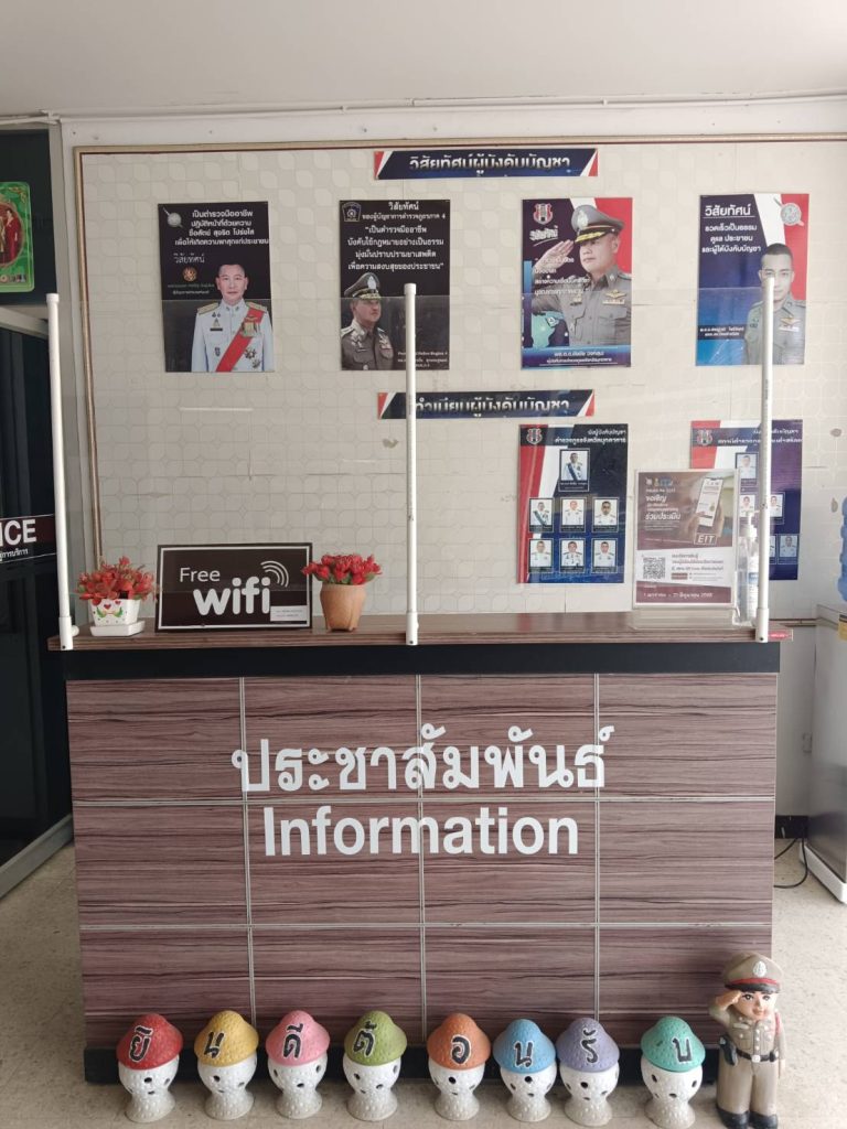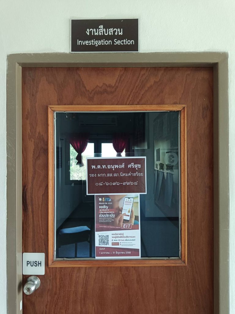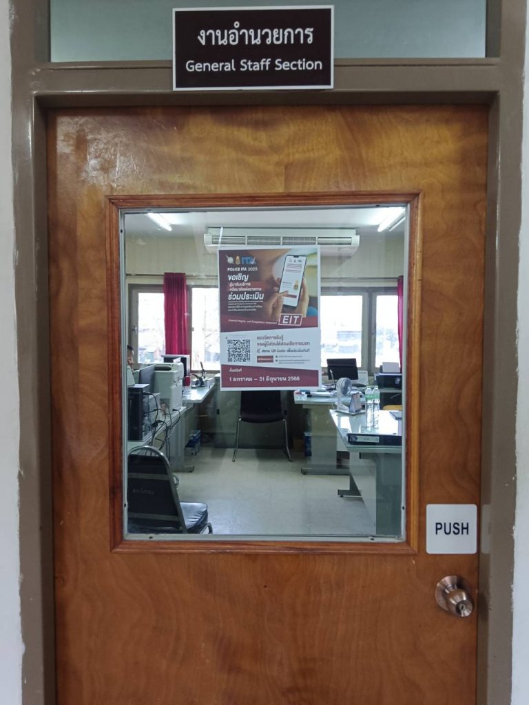 การติดป้าย No Gift Policy หน้าห้องหัวหน้าสถานีตำรวจภูธรนิคมคำสร้อย พ.ต.อ.พิชญ์วุฒิ โพธิ์จันทร์ ผกก.ส