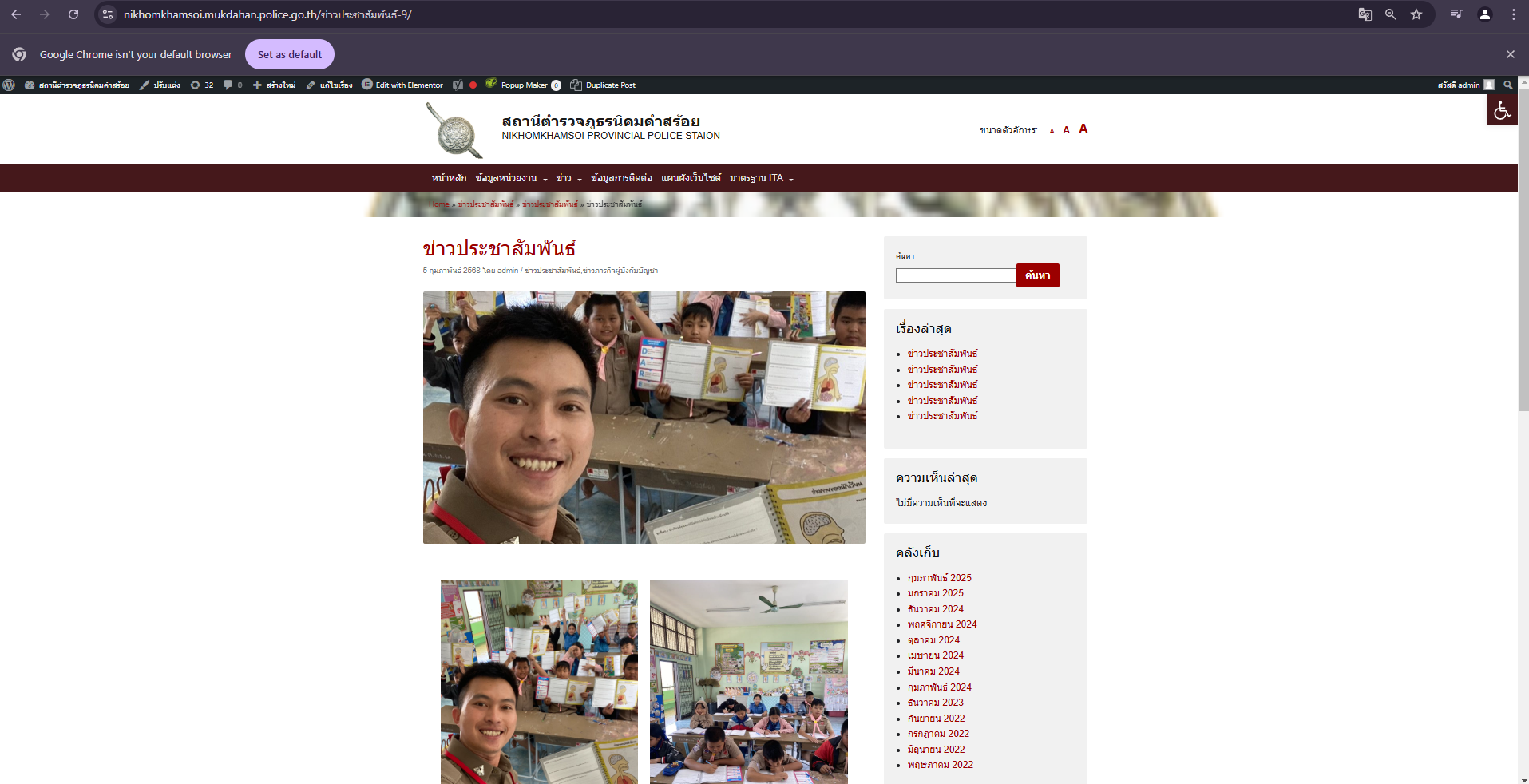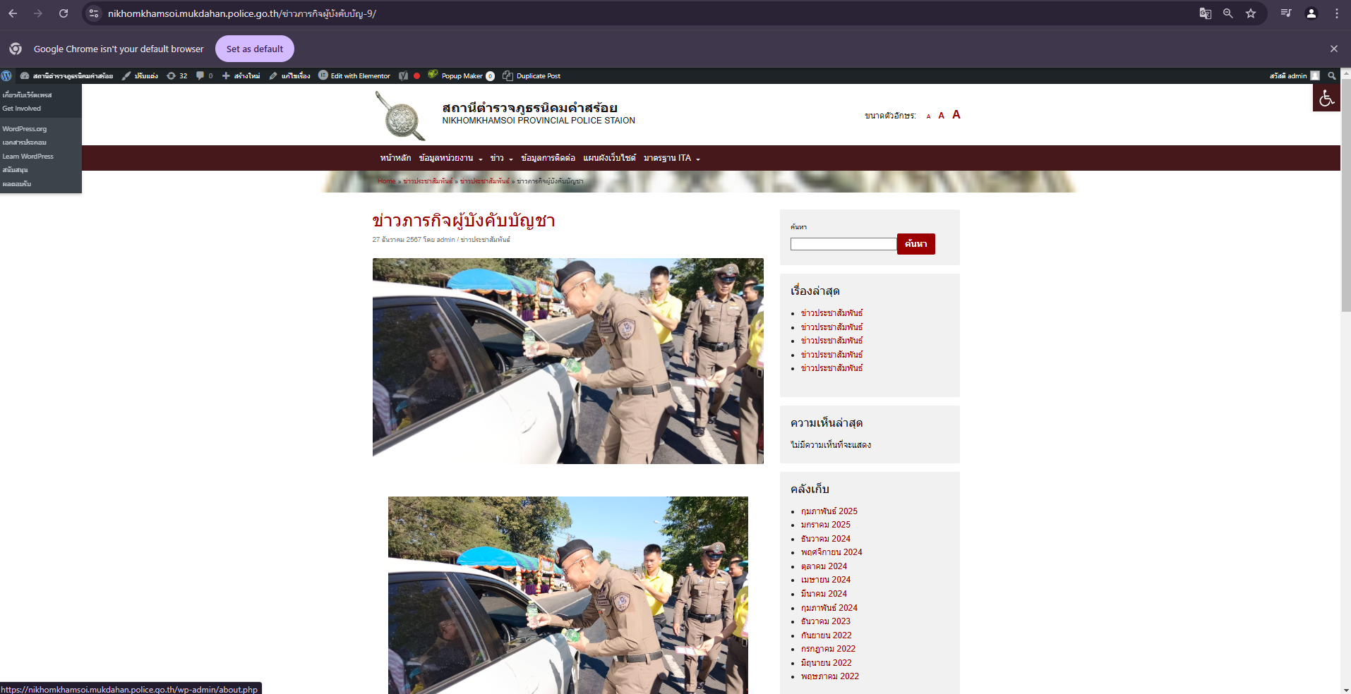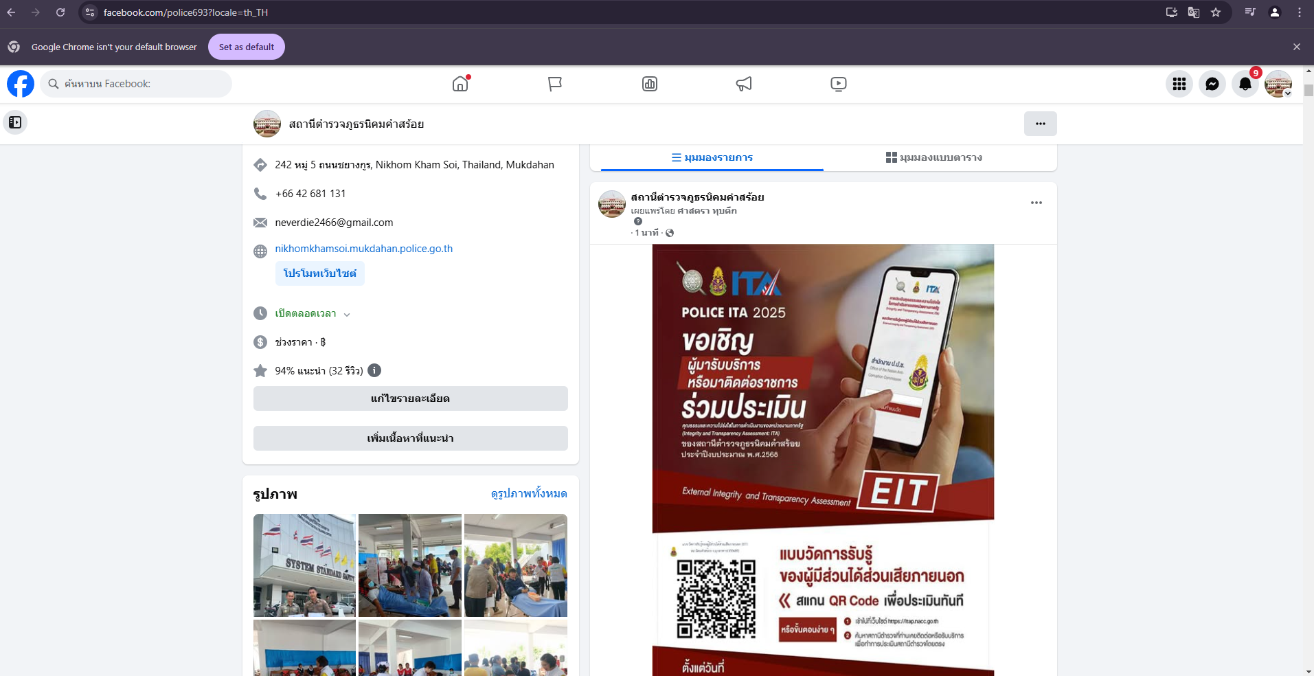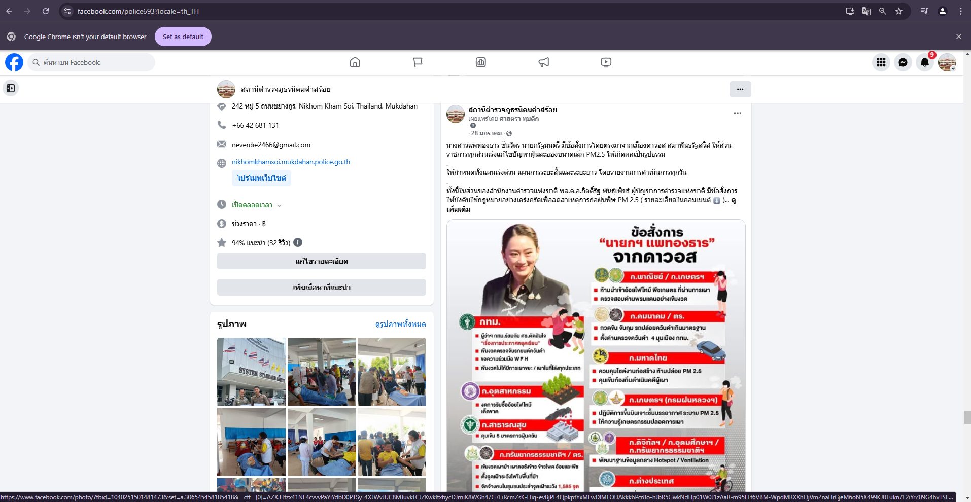 การติดป้าย No Gift Policy หน้าห้องหัวหน้าสถานีตำรวจภูธรนิคมคำสร้อย พ.ต.อ.พิชญ์วุฒิ โพธิ์จันทร์ ผกก.ส