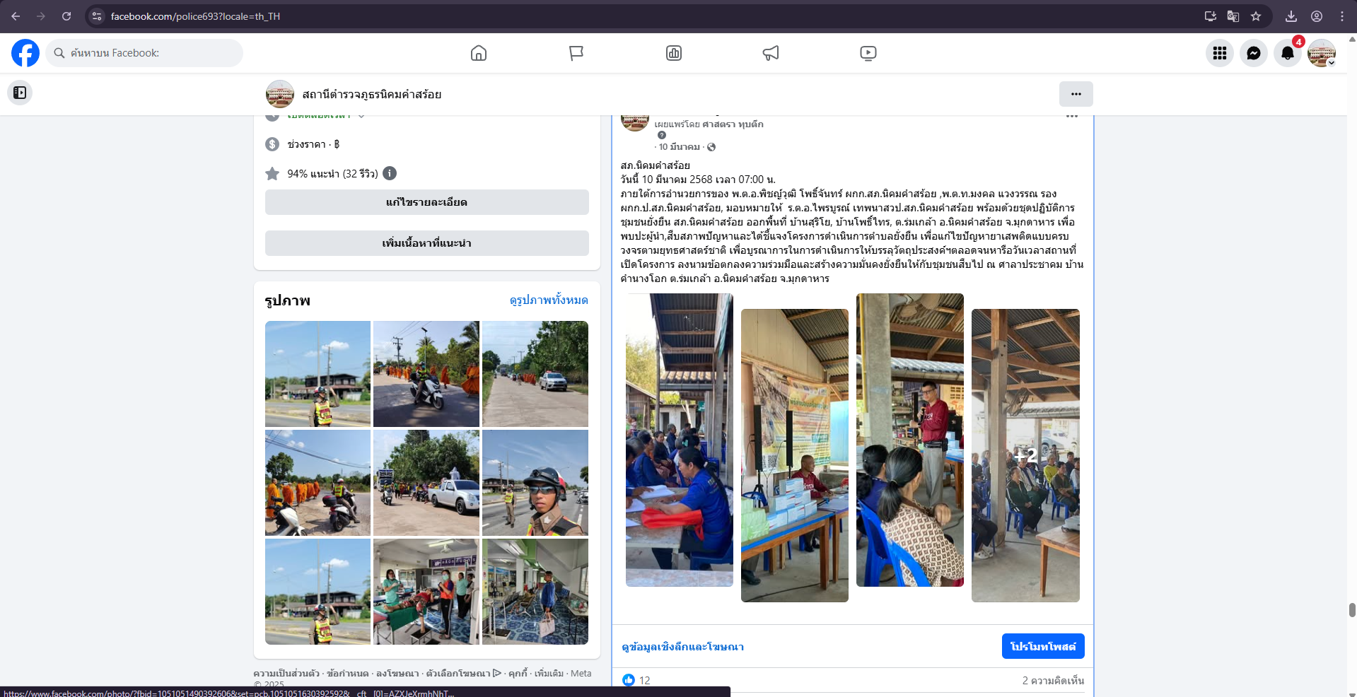 วันที่(12มี.ค.2568) เวลา16.00น. พ.ต.อ.พิชญ์วุฒิ โพธิ์จันทร์ ผกก.สภ.นิคมคำสร้อย พ.ต.ท.มงคล แวงวรรณ รอ