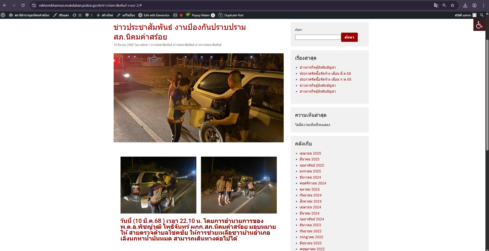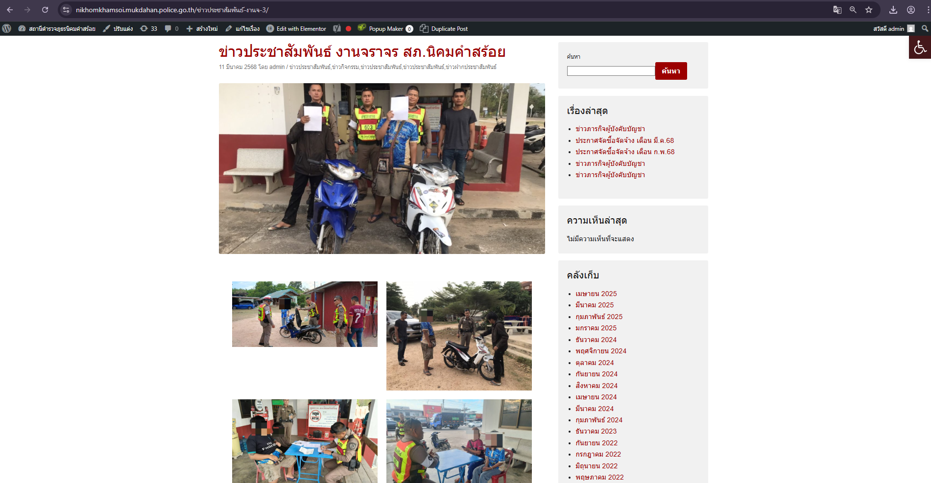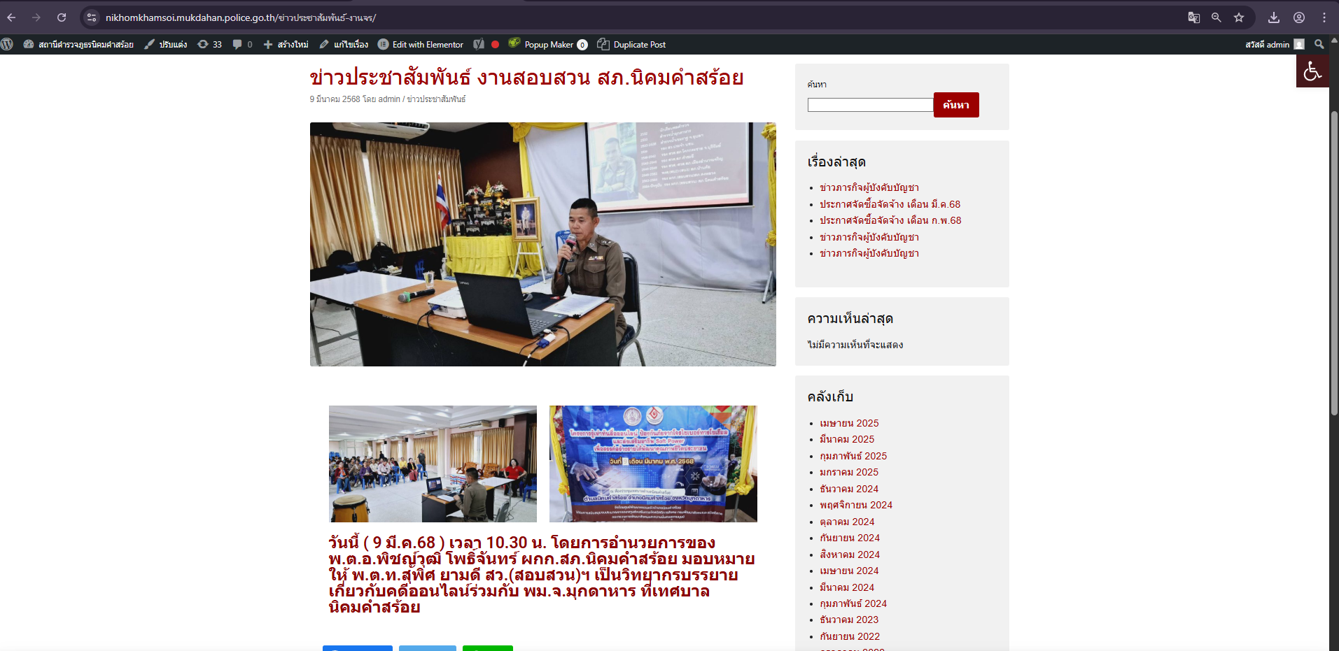 ข้อมูลการดำเนินงานประจำ เดือน มีนาคม พ.ศ.2568
