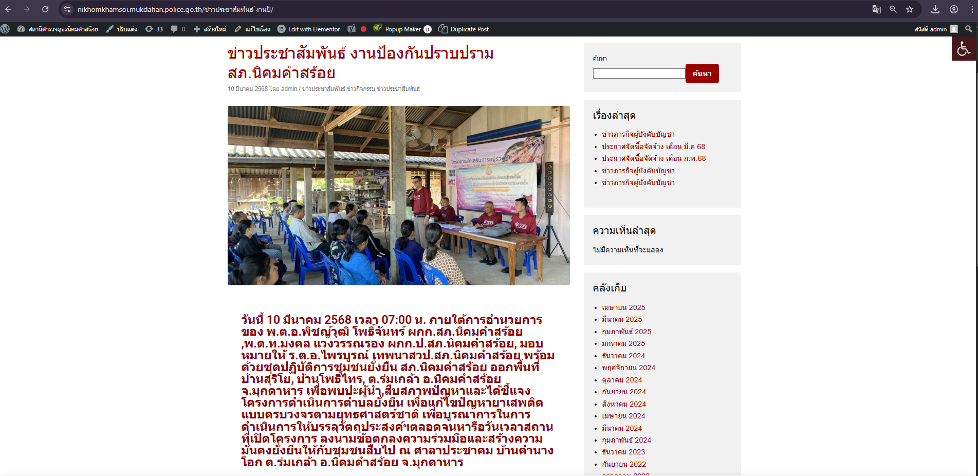 วันที่ 12 มี.ค. 2568 เวลา 14.30 น. นำโดย พ.ต.อ.พิชญ์วุฒิ โพธิ์จันทร์ ผกก.สภ.นิคมคำสร้อย พ.ต.ท.มงคล แ
